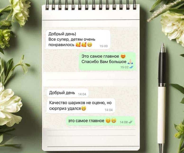 Наш главный приоритет — ваши эмоции, поэтому мы создаём незабываемые мероприятия. 🎨 Команда специалистов работает слаженно и обеспечивает безупречное выполнение заказов, включая срочную доставку воздушных сюрпризов. 🚗