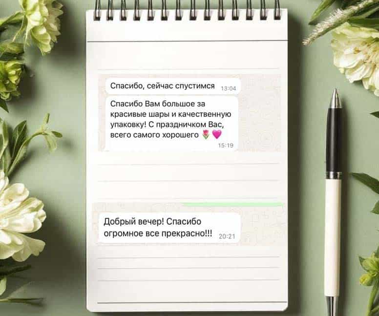 Можете быть уверены: гарантируем оперативную доставку в любое время суток для воплощения ваших идей. 💫 Особое предложение для влюблённых! При организации романтического вечера устроим волшебный финал — парящую композицию из гелиевых шаров. 💞🎈